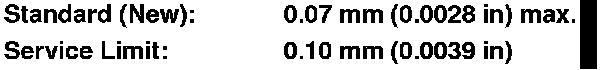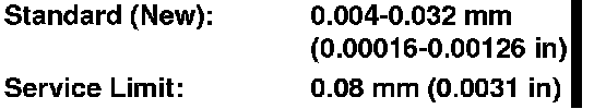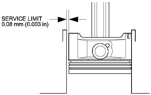 7. Calculate the difference between cylinder bore diameter and the piston diameter. If the clearance is near or exceeds the service limit, inspect the piston and the cylinder bore for excessive wear.
