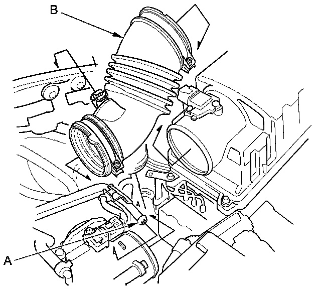 3. Remove the intake air duct (B).
