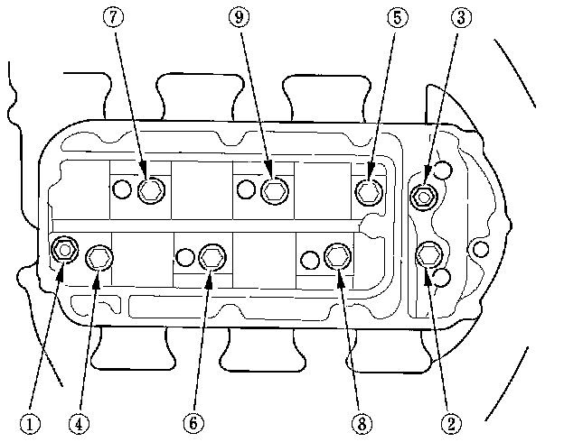 8. Remove the intake manifold mounting bolts and nuts sequentially in three steps.