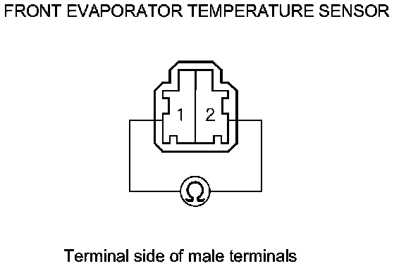 5. If the resistance is not as specified, replace the front evaporator temperature sensor Front Evaporator Temperature Sensor Replacement.