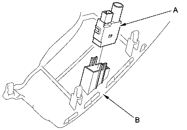 2. Remove the humidity/in-car temperature sensor (A) from the driver's dashboard lower cover (B).