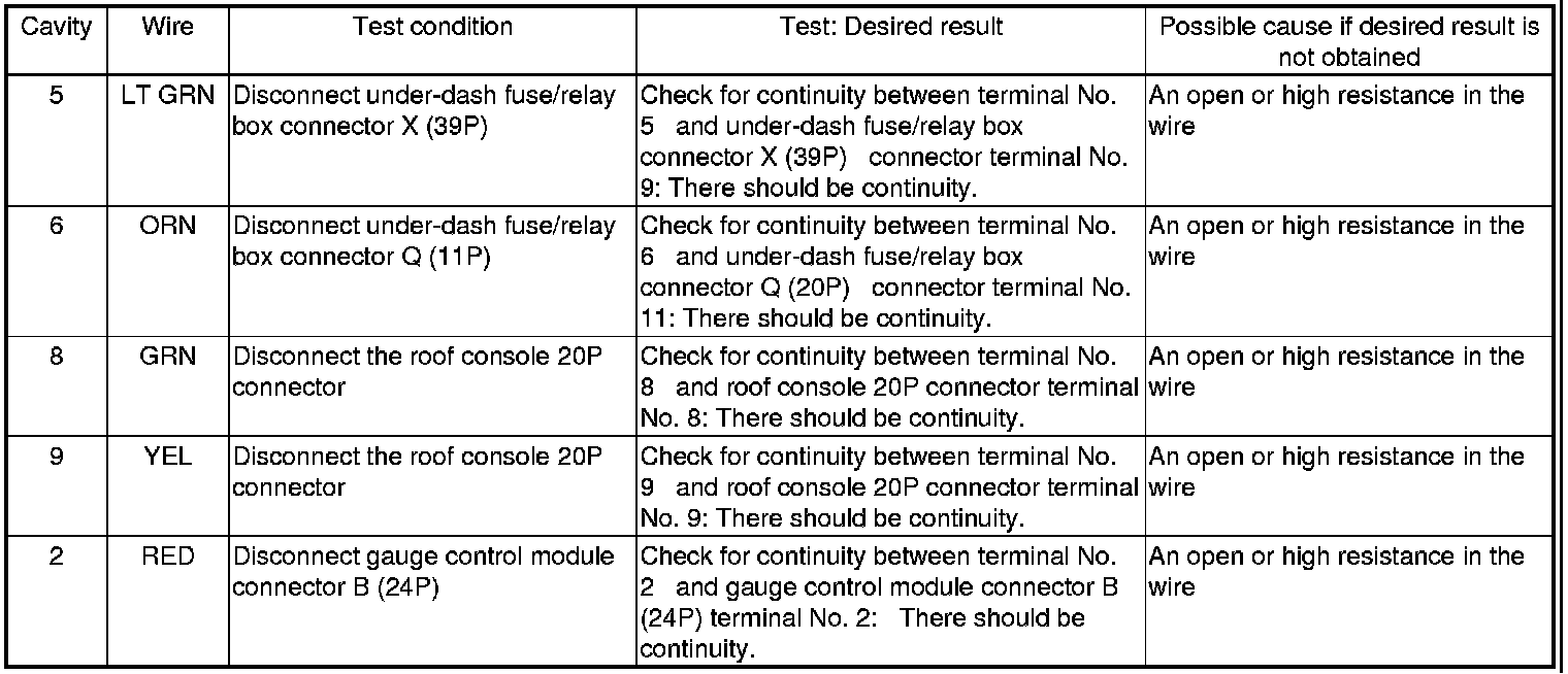 6. Reconnect the connector to the rear individual map light, and do the following input tests: