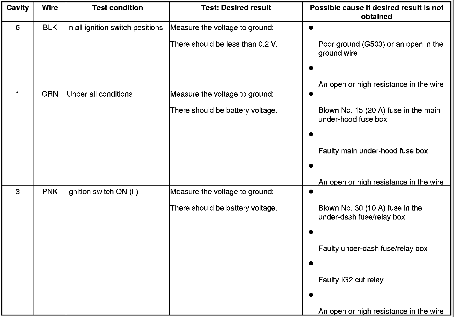 5. With the connector still disconnected, do the following input tests: