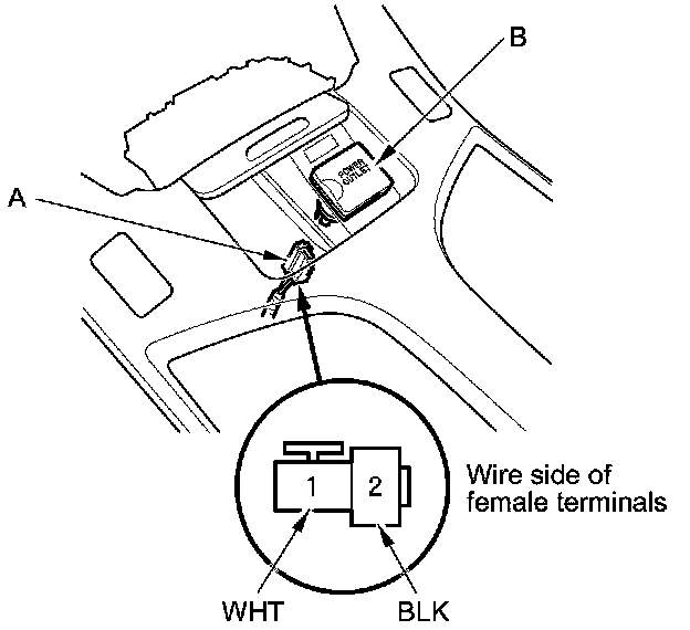 2. Disconnect the 2P connector (A) from the front accessory power socket (B).