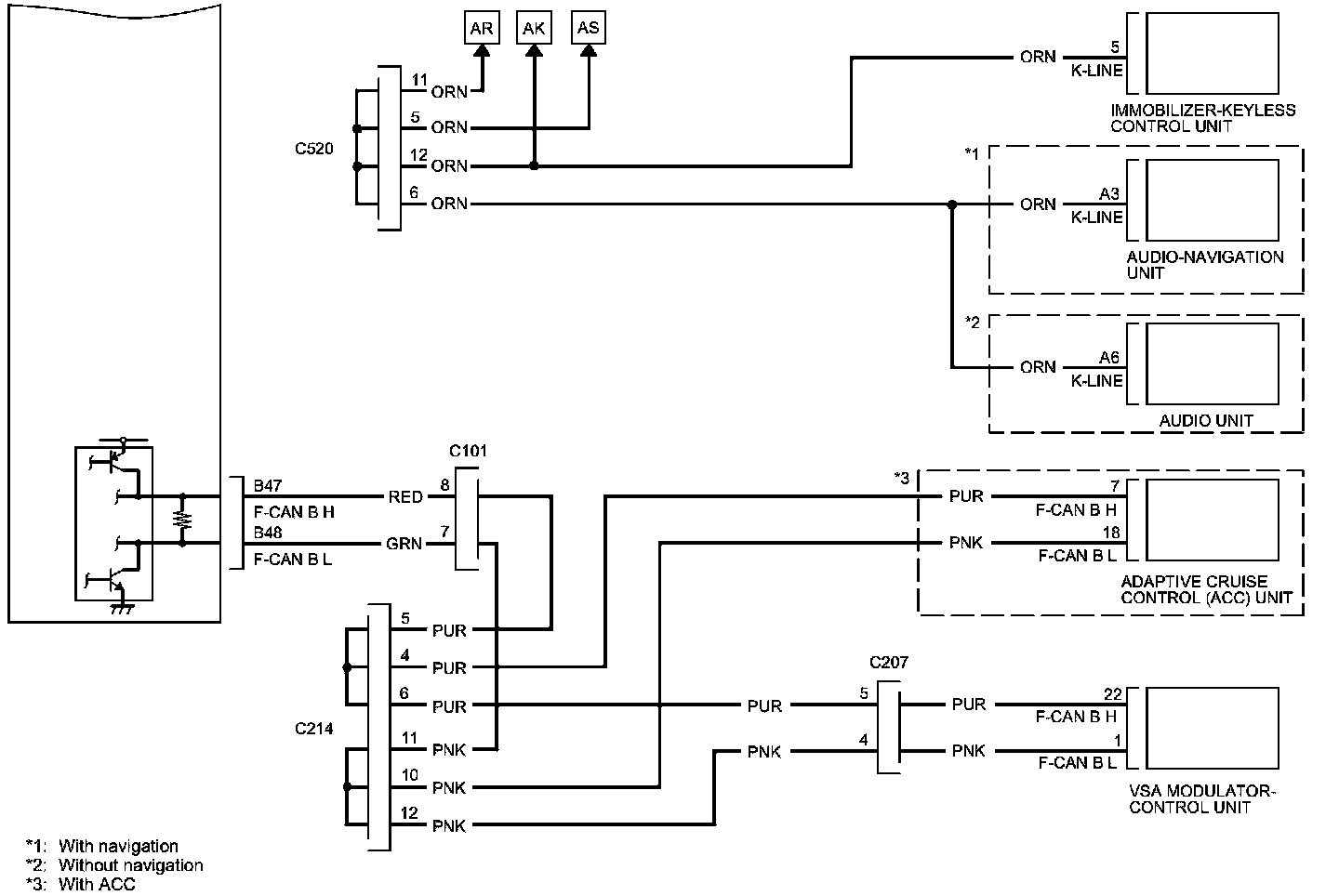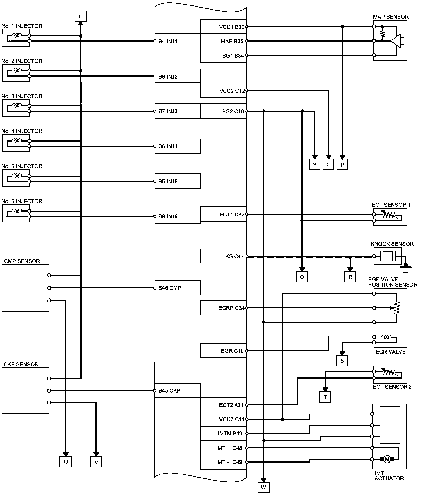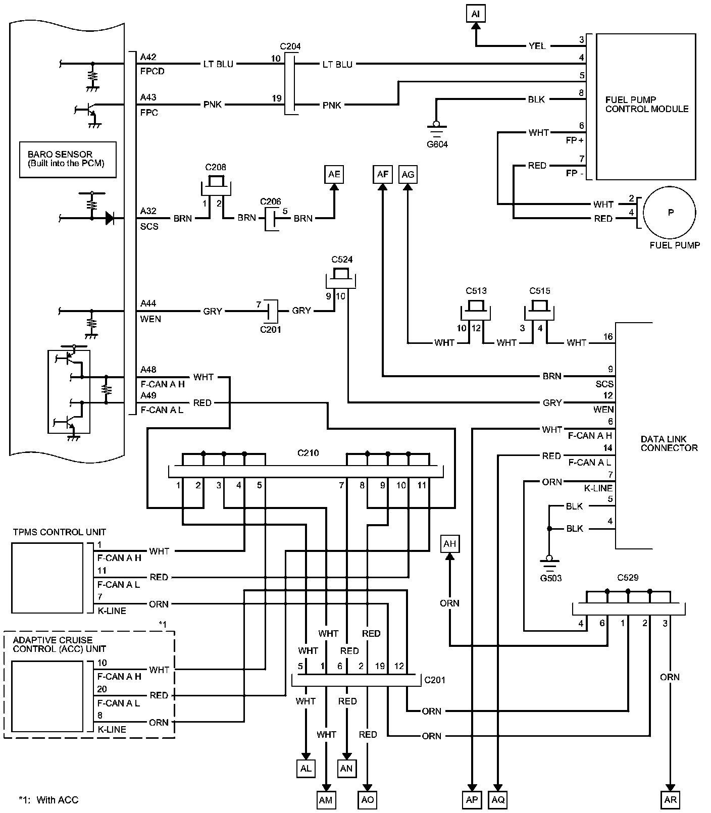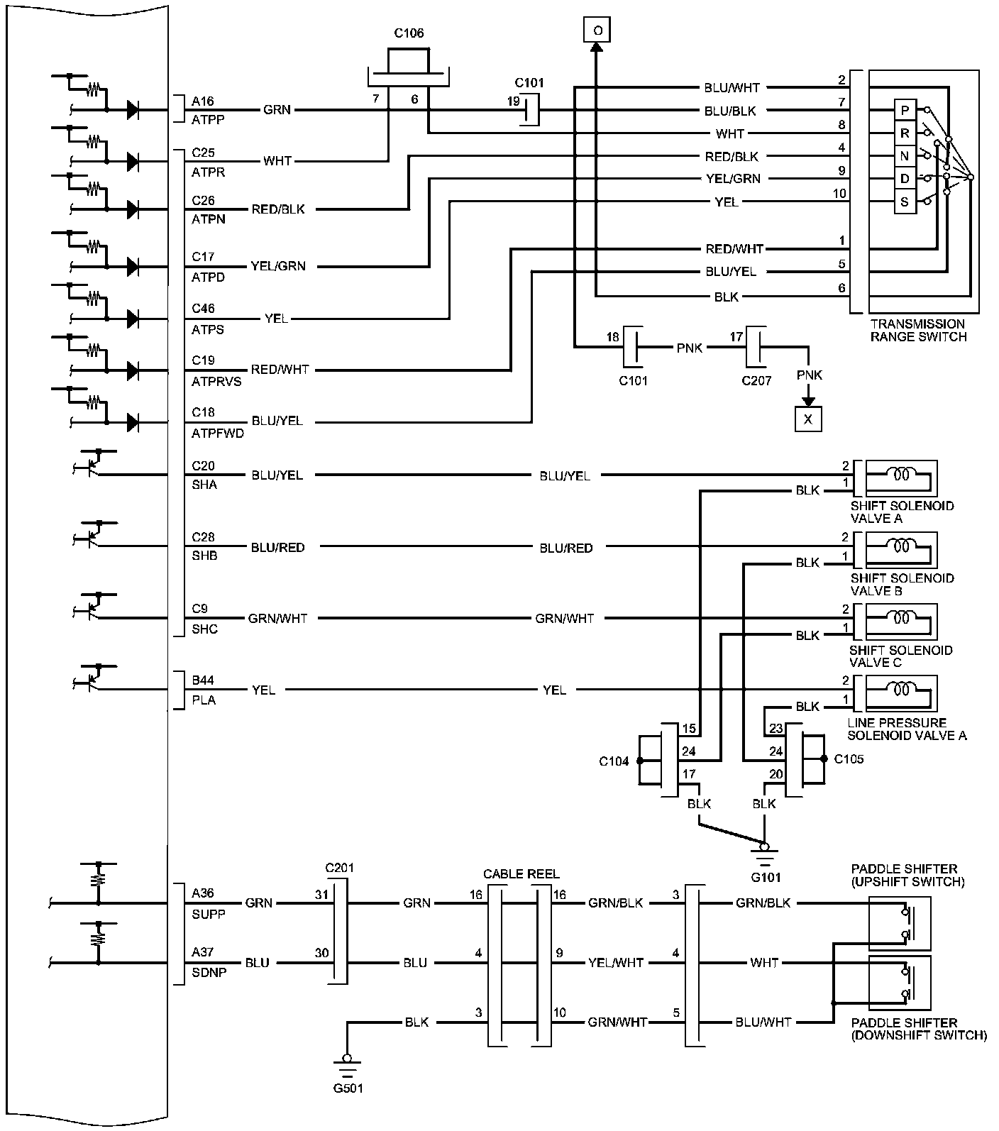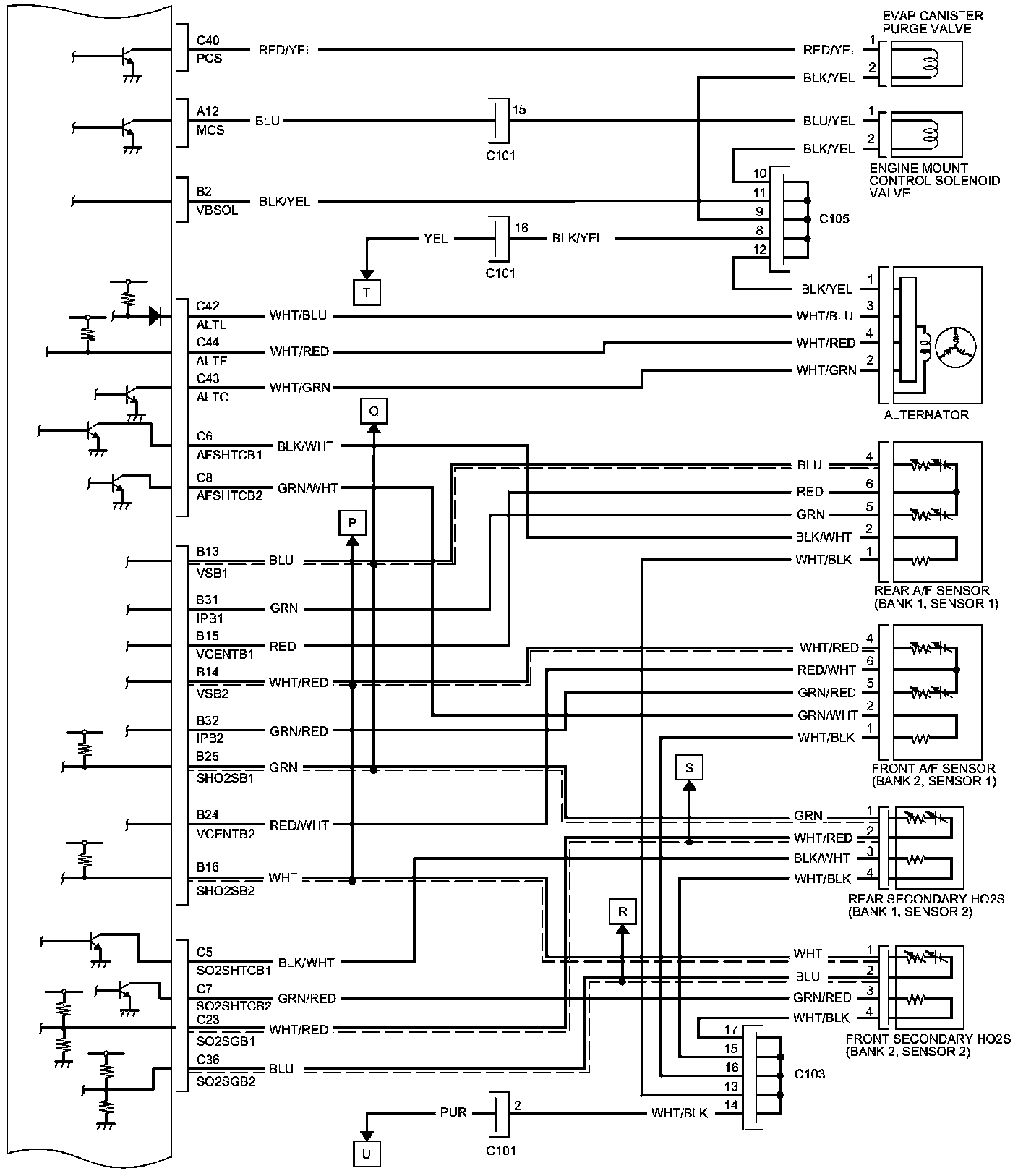 PCM Inputs and Outputs at PCM Connector C (circle) (49P)
