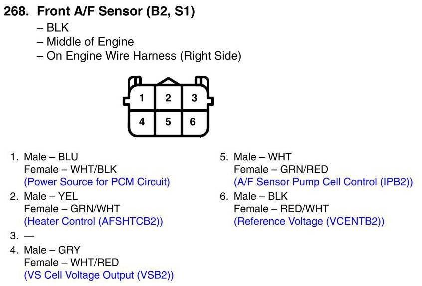 Front A/F Sensor (B2, S1) Connector View