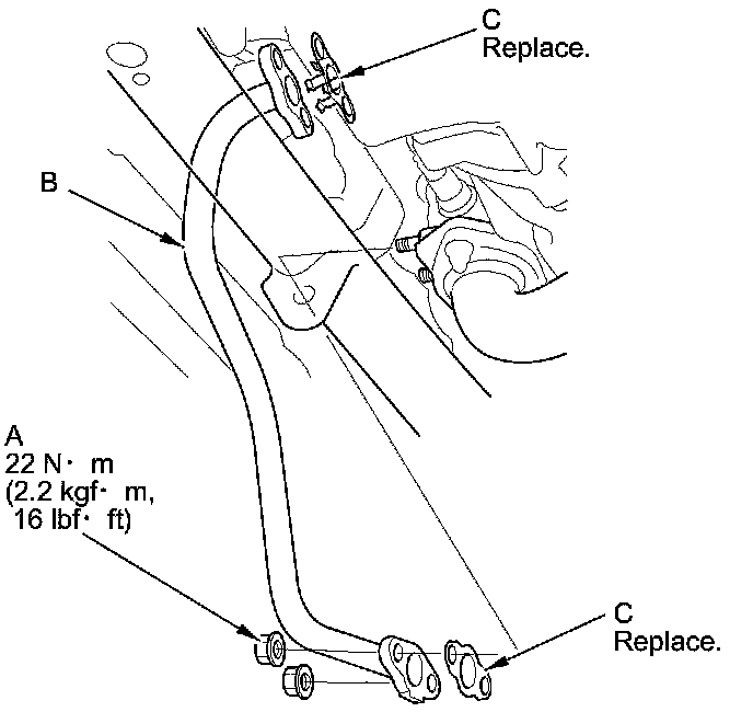 5. Install the parts in the reverse order of removal with new gaskets (C).