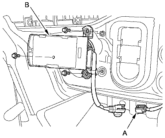 2. Disconnect the 6P connector (A) from the BSI radar unit (B).