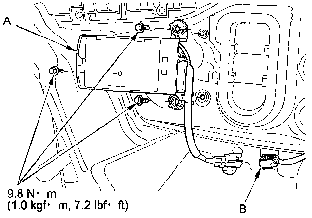 5. Install the BSI radar unit (A) with the bolts.