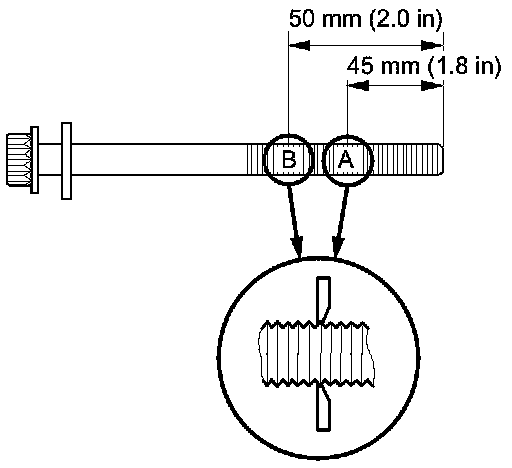 Install new bolt if either diameter is less than 11.3 mm (0.44 in)