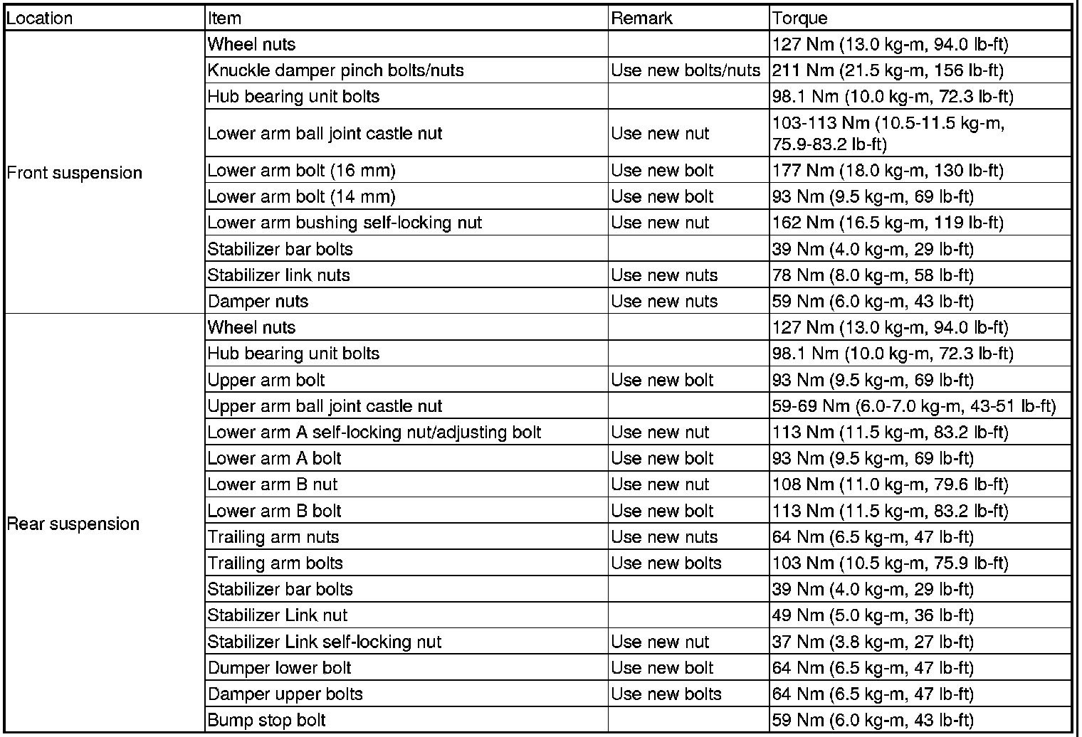 Refer to the Service Data for the bolts/nuts not indicated here.