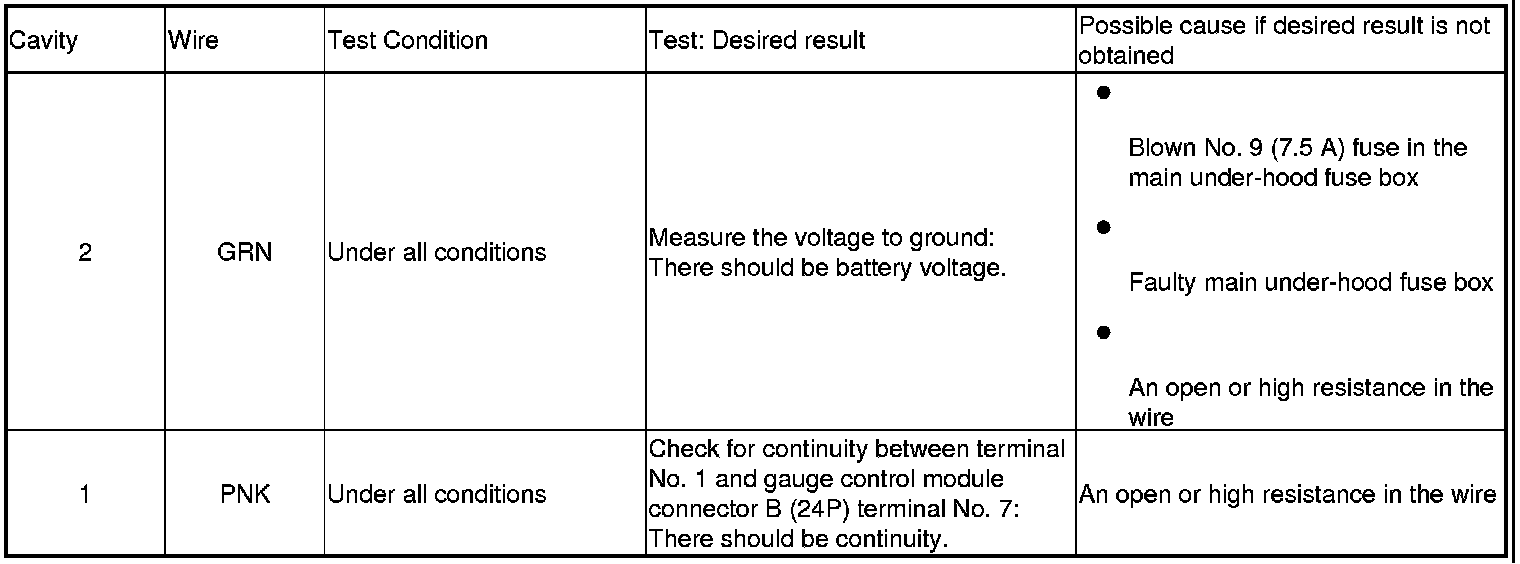 NOTE: Before testing, make sure the battery ground cable is installed correctly, and make sure there is continuity between the battery negative terminal and ground terminal G1.
