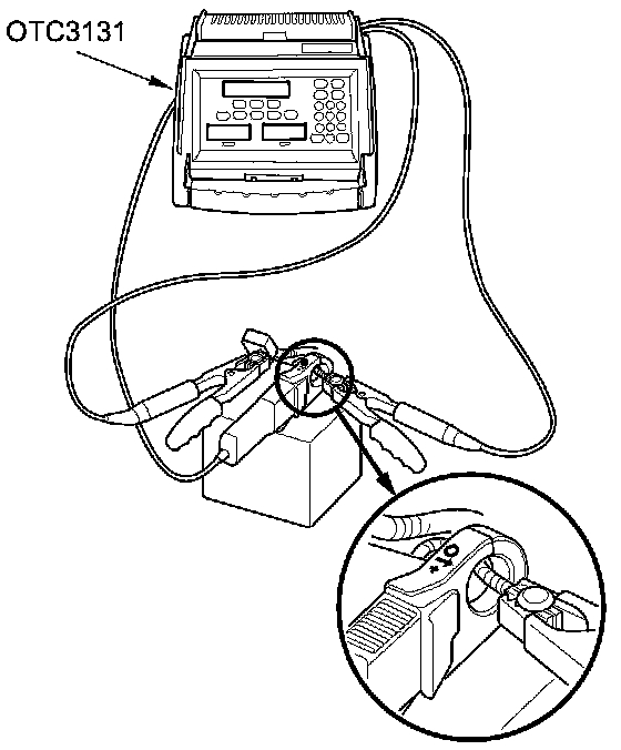 12. Connect the alternator, regulator, battery, and starter tester (OTC3131) to the battery.