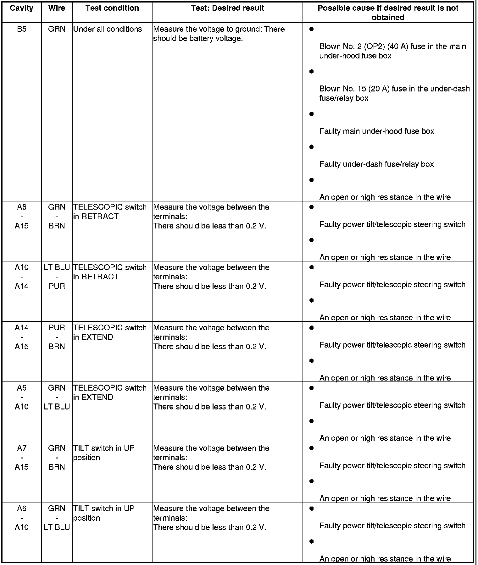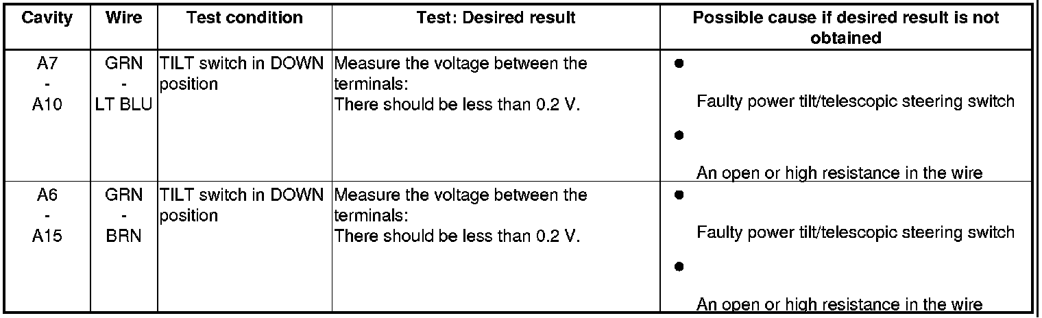 Power Tilt/Telescopic Steering Control Unit Input Test