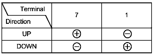 2. Test the power window motor in each direction by connecting battery power and ground according to the table. When the motor stops running, disconnect one lead immediately.