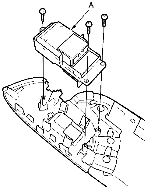3. Remove the three mounting screws and the front passenger's power window switch (A).