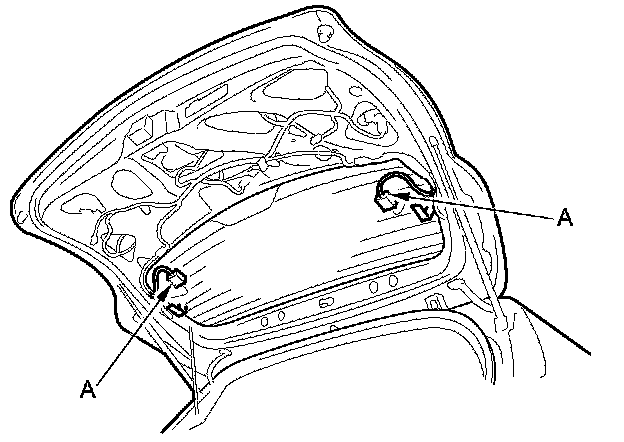 2. Disconnect the rear window defogger connectors (A).