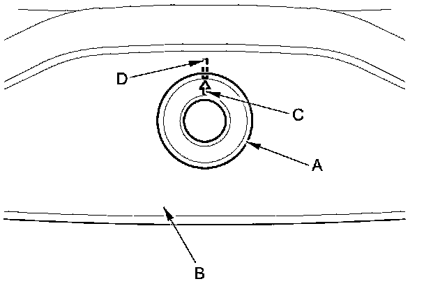 9. If a new rear window is to be installed, install the rear wiper seal (A) to the rear window (B) with its alignment mark (C) being aligned with the mark (D) on the rear window.