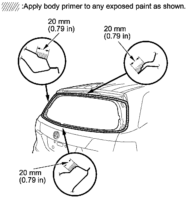 - Never touch the primed surfaces with your hands. If you do, the adhesive may not bond to the rear window properly, causing a leak after the rear window is installed.