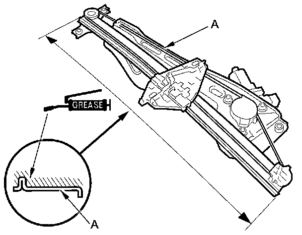 7. Apply multipurpose grease to all the sliding surfaces of the regulator (A) where shown.
