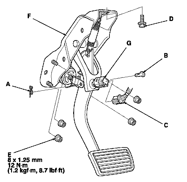 4. Remove the brake pedal with bracket (F).
