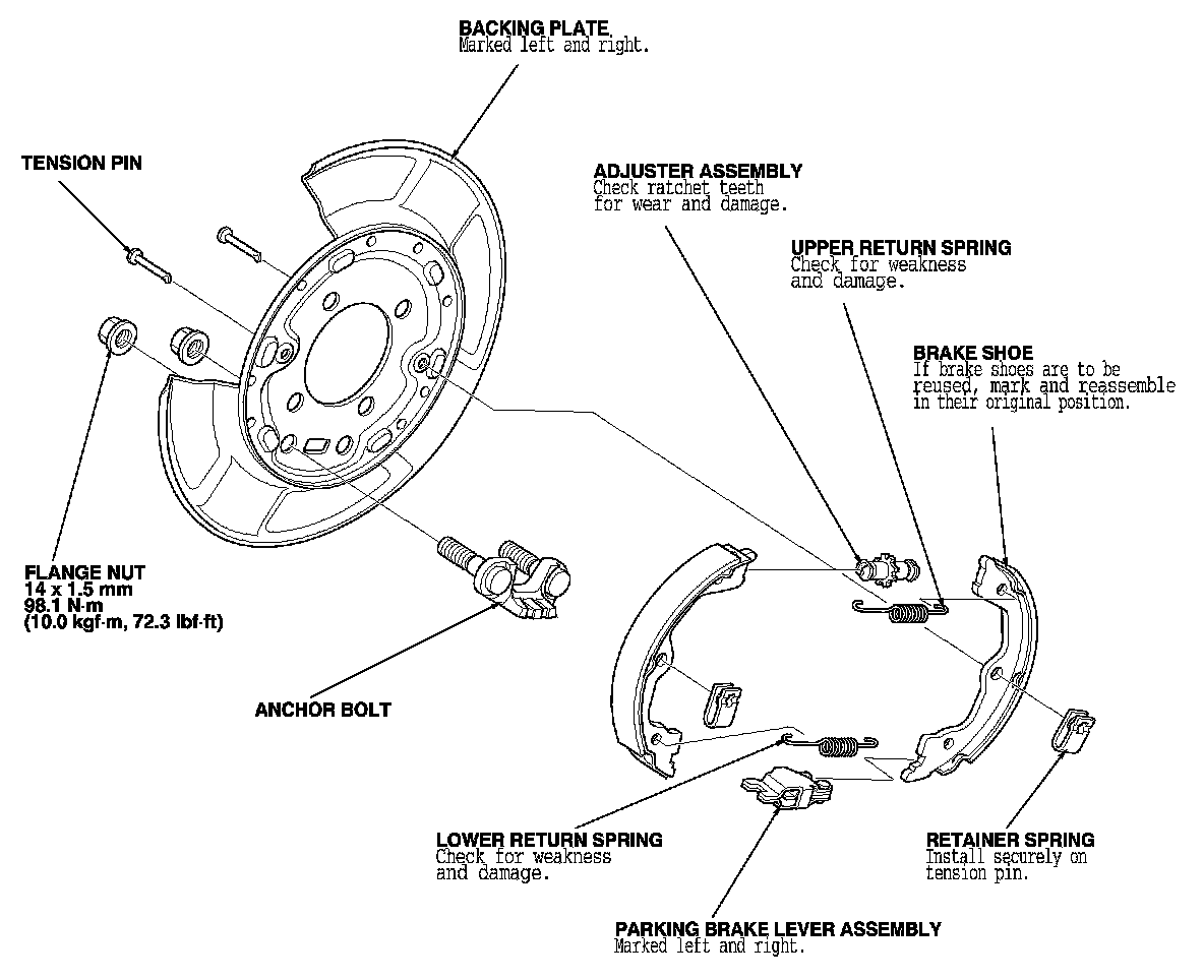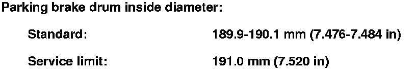 10. If the inside diameter of the parking brake drum is more than service limit, replace the brake disc/drum.