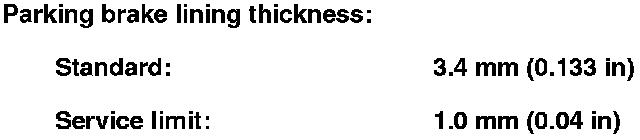 7. If the parking brake lining thickness is less than the service limit, replace all the parking brake shoes as a set.