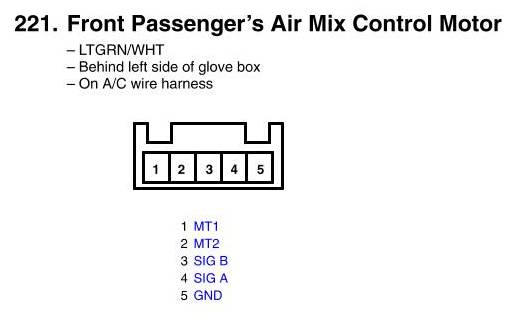 View 221 - Front Passenger's Air Mix Control Motor Connector View
