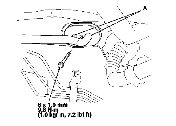 3. Remove the bolt, then disconnect the A/C lines (A) from the evaporator core.