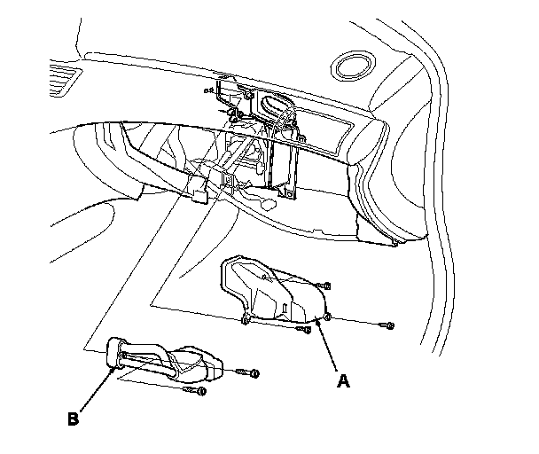 5. Remove the self-tapping screws and the expansion valve cover (A), then remove the bolts and the pipe (B) without bending the lines.