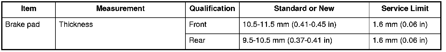 Brake Pad Specifications