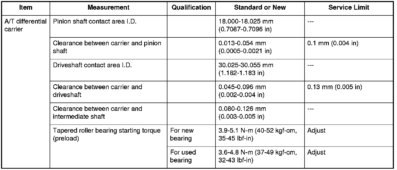 A/T Differential Carrier Specifications