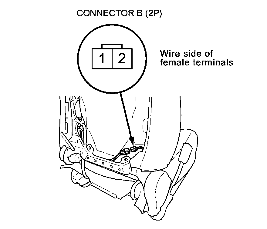 6. Check for continuity between seat heater connector B (2P) terminals No. 1 and No. 2. There should be continuity.