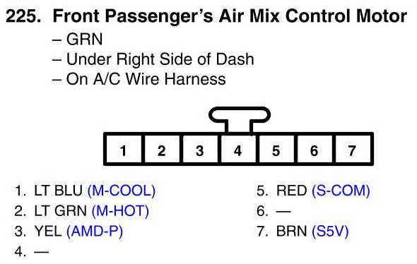View 225 - Front Passenger's Air Mix Control Motor Connector View
