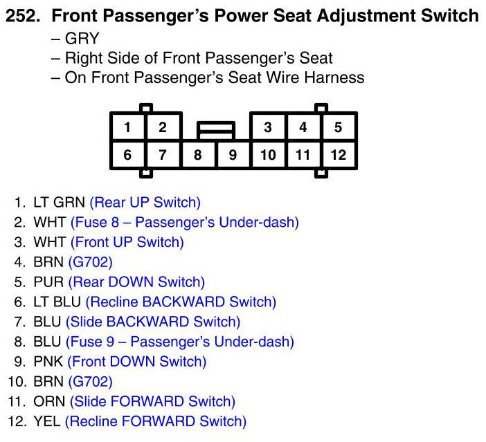 View 252 - Front Passenger's Power Seat Adjustment Switch Connector View