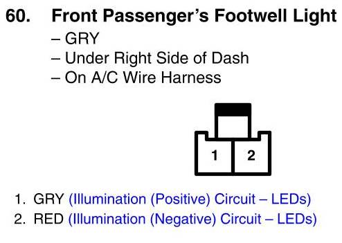 View 60 - Front Passenger's Footwell Light Connector View