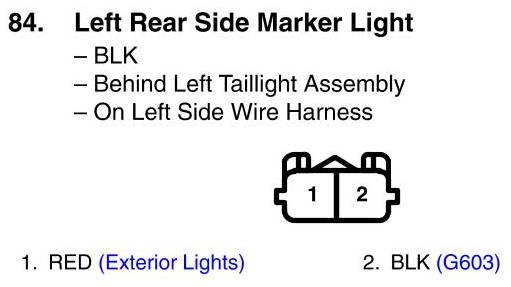 View 84 - Left Rear Side Marker Light Connector View