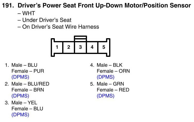 Driver's Power Seat Front Up-Down Motor/Position Sensor Connector View