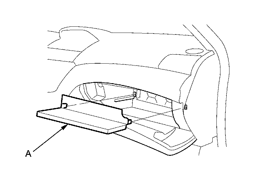 1. Open the glove box. Remove the glove box separator (A) by carefully pulling it straight back.