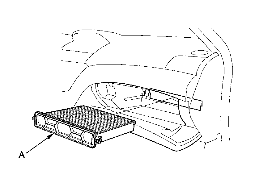 2. Remove the dust and pollen filter assembly (A) from the blower unit.