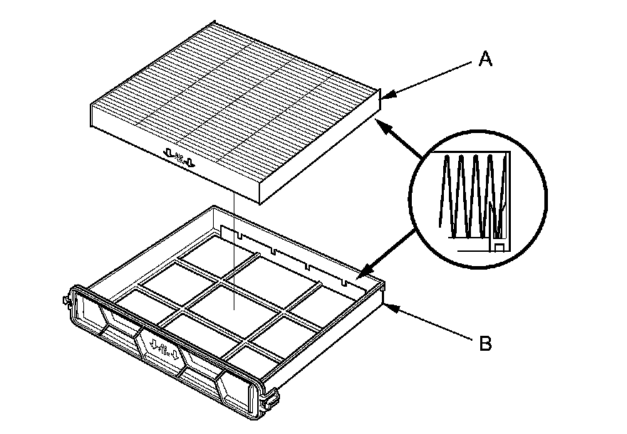3. Remove the filter (A) from the housing (B), and replace the filter.