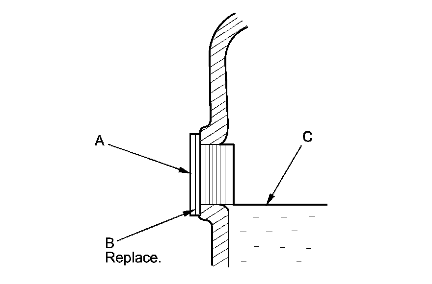 3. Remove the filler plug (A) and the sealing washer (B), then check the condition of the fluid, and make sure the fluid is at the proper level (C).