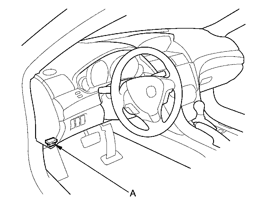 8. With the ignition switch in LOCK (0), or the vehicle in the OFF mode, connect the HDS to the DLC (A) located under the driver's side of the dashboard.