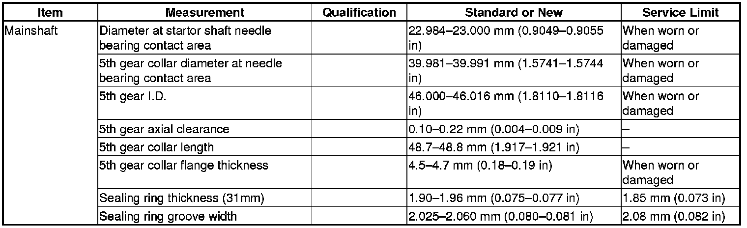 Mainshaft Specification(s) (A/T)