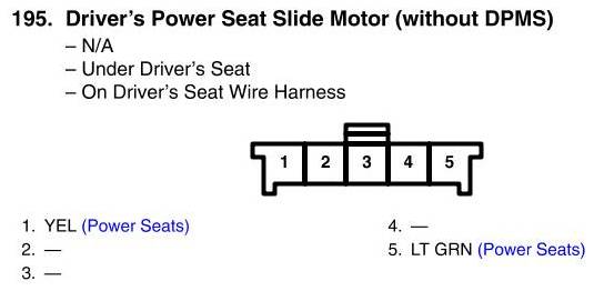View 195 - Driver's Power Seat Slide Motor Connector View (Without DPMS)