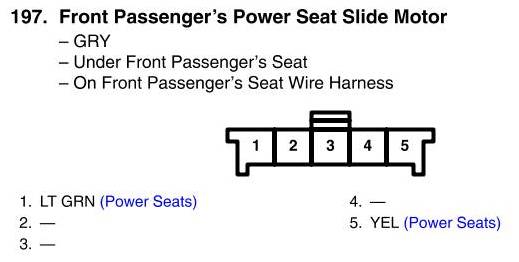 View 197 - Front Passenger's Power Seat Slide Motor Connector View