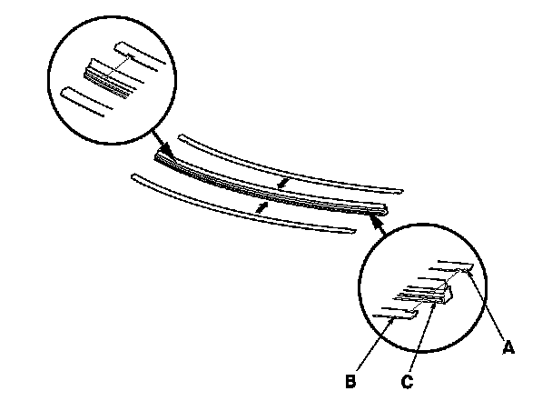 1. Align the groove (A) of the each rail (B) and a new blade (C).