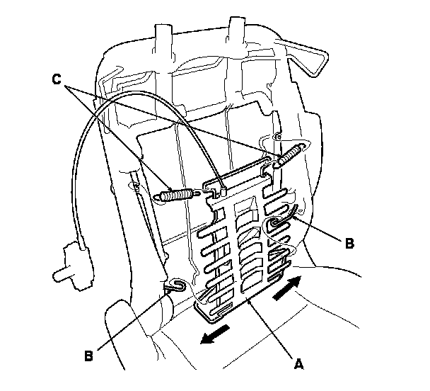 -3 Release the upper part of the lumbar support from both upper springs (C).