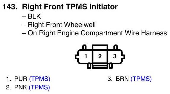 View 143 - Right Front TPMS Initiator Connector View