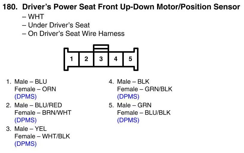 View 180 - Driver's Power Seat Front Up-Down Motor/Position Sensor Connector View